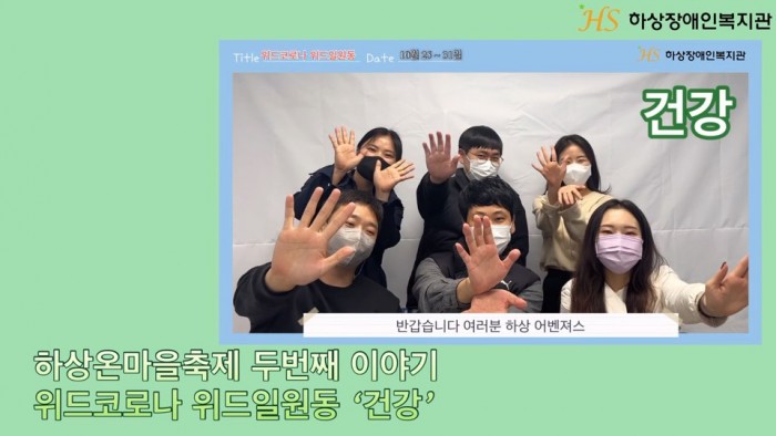 지역옹호팀에서는 위드코로나에 발맞추어 나와 지역 공동체가 함께 코로나19를 극복할 수 있는 온라인 마을축제를 진행하였습니다. 2021 하상온마을축제 「위드코로나 위드일원동」은 지역주민의 공동체성을 높이며 사회의 구성원으로 함께 할 수 있는 4가지(환경, 건강, 인식, 감사)주제를 정하여 공동의 미션을 수행하였고 주민 간 접촉 없이 가정 내에서도 즐길 수 있도록 네이버 밴드 ‘하상온마을축제’에서 진행되었습니다.