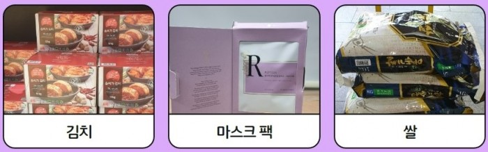 강남복지재단: 김치(10kg) 15박스, 쌀(10kg) 20포, 마스크 팩 1,864개