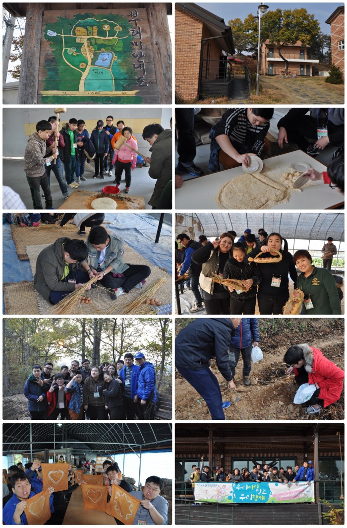 2015년 주간보호 인식개선 캠프가 11월 5일(목)~6일(금), 경기도 이천 부래미 농촌체험마을에서 진행되었습니다. 이번 캠프는 장애인과 비장애인이 함께 짝을 이루어 인절미 떡 만들기, 천연 염색 손수건만들기, 볏짚 공예, 고구마캐기 등의 활동이 이루어 졌습니다.