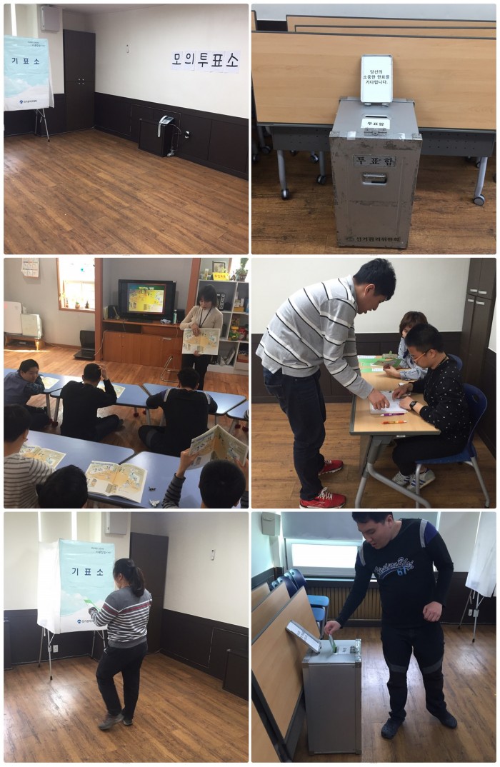 4월 8일(금), 주간보호 인권교육이 관내에서 진행되었습니다. 4월 13일 선거를 맞아 인간의 기본 권리인 참정권에 대해 알아보기 위해 모의투표체험을 실시하였습니다. 비록 모의체험이지만 참여자들이 직접 투표에 참여함으로써 선거절차를 인지하고 참정권이라는 인권의 중요성에 대해 알아볼 수 있는 의미 있는 시간이었습니다.