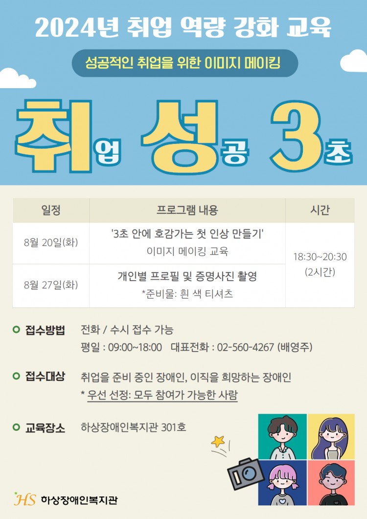 직업능력개발팀에서는 ‘취업 성공 3초’ 주제로 이미지 메이킹 교육과 프로필/증명사진 촬영하는 프로그램을 진행하려고 합니다!