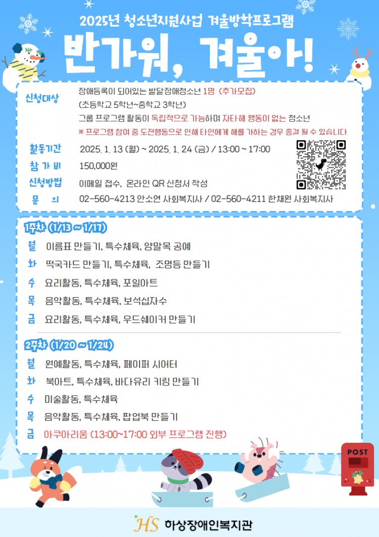 2025년 발달장애청소년 겨울방학 프로그램 “반가워, 겨울아!”추가모집