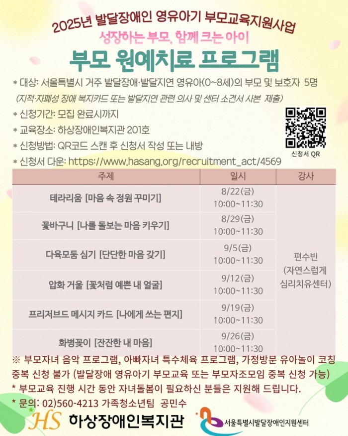 [하상장애인복지관 2025년 발달장애인 영유아기 부모교육지원사업 종합 안내]