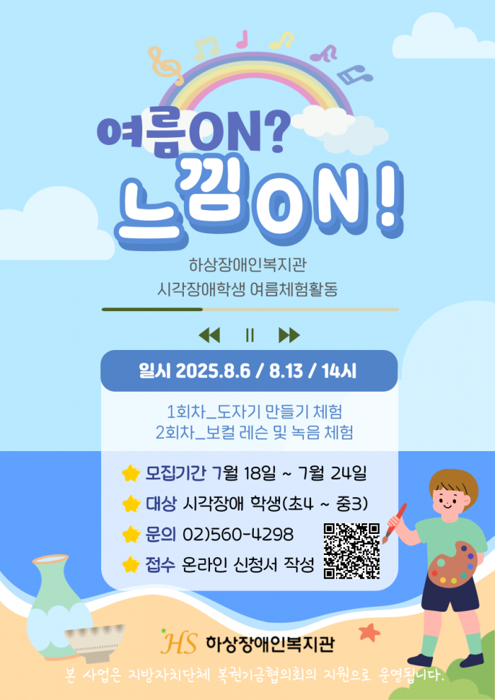 감각을 통해 자신을 표현하고, 창의적 경험을 쌓을 수 있는 소중한 여름의 시간을 함께하세요!