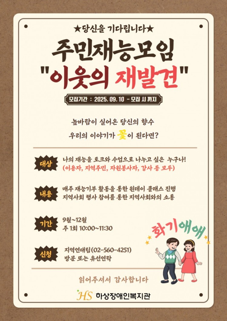모집중 주민재능모임 "이웃의 재발견" 재능을 나누실 지역주민을 모집합니다!