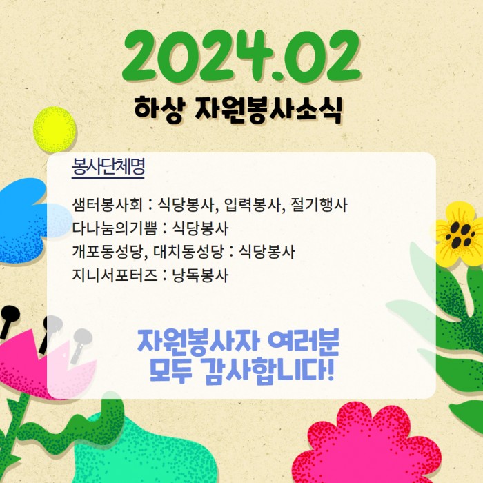 샘터봉사회 : 식당봉사, 입력봉사, 절기행사